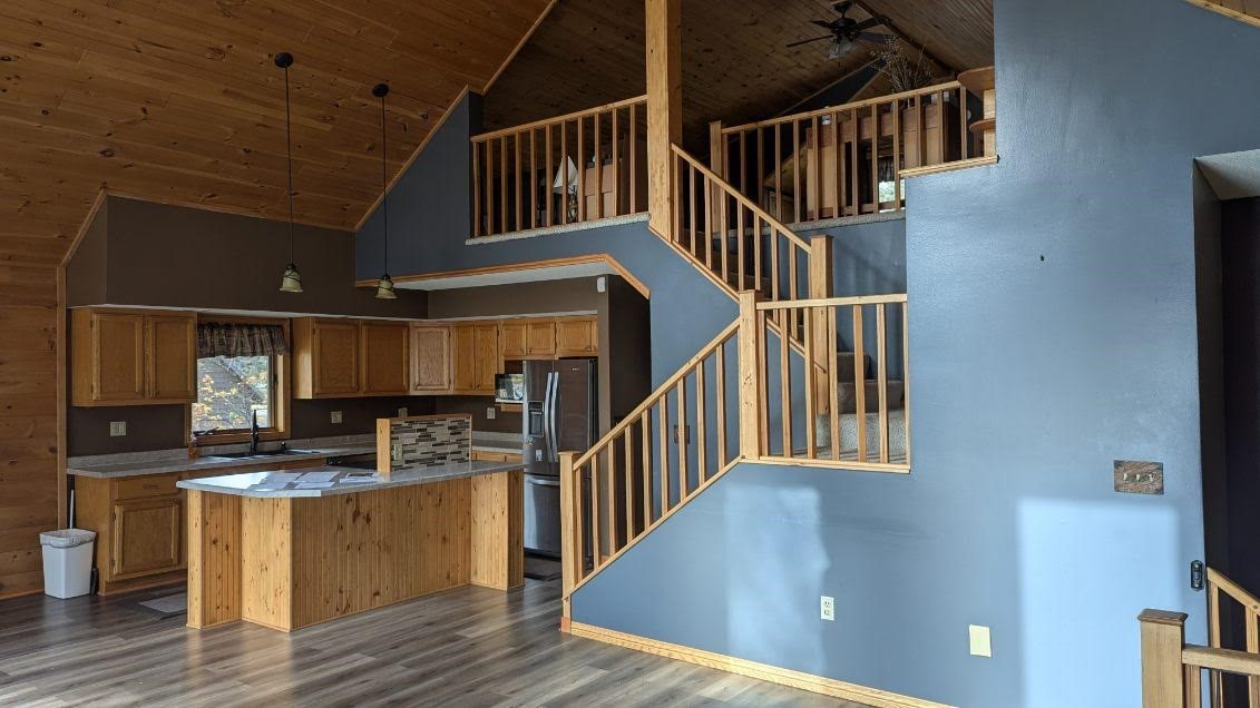 Featuring 3 bedrooms, 3 full baths, and nearly 3,000 square feet of finished living space, the home boasts an inviting open-concept layout with soaring timber accents, vaulted ceilings, and large windows that fill the space with natural light.